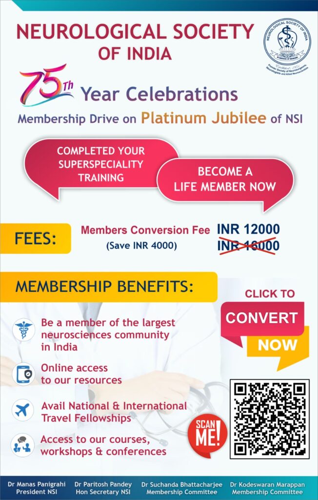 NEUROLOGICAL SOCIETY OF INDIA 75th Year CelebrationsMembership Drive on Platinum Jubilee of NSI COMPLETED YOUR SUPER SPECIALITY TRAININGBECOME A LIFE MEMBER NOW FEES:Members Conversion Fee(INR […]
