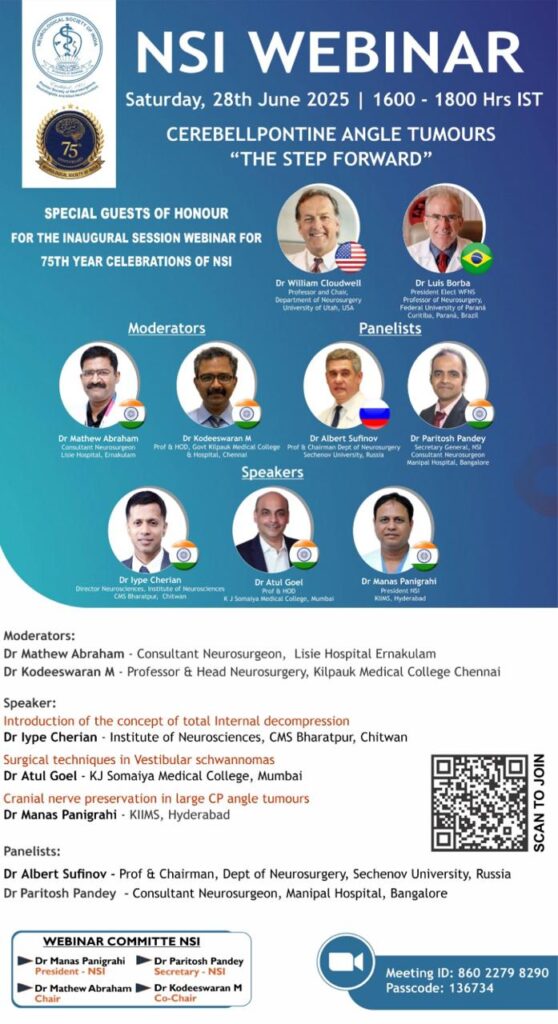 NSI WEBINAR Saturday, 28th June 2025 | 1600 – 1800 Hrs IST CEREBELLOPONTINE ANGLE TUMOURS “THE STEP FORWARD” 🎉 Special Guests of Honour For the Inaugural […]
